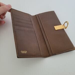 GUCCI Vintage Clasp Horsebit Wallet Bifold Brown Large Retro Clutch Leather Box