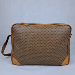 Gucci Vintage GG Monogram Canvas Coated Weekender Travel Brown Crossbody Bag