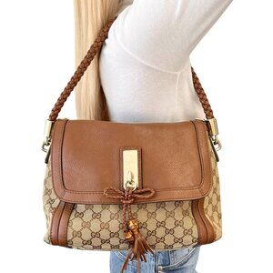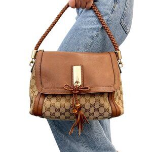 GUCCI Vintage GG Monogram Logo 2way Crossbody Shoulder Bag Beige Brown [106489]