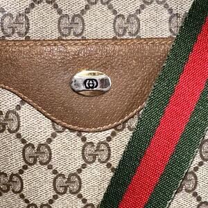 GUCCI Vintage GG Supreme Canvas Tote Web Stripe Shoulder Bag Italy Authentic