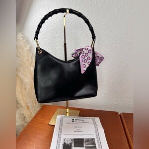 GUCCI Vintage Hand Bag 2 way Bamboo Black Leather Authentic