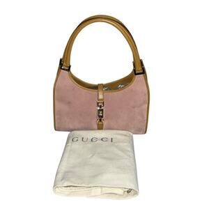 GUCCI Vintage Jackie Piston Hand Bag Purse Suede Leather Pink W/ Dust bag