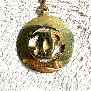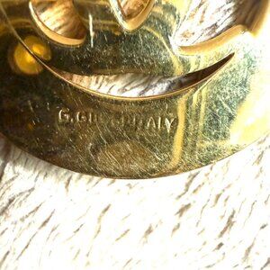 This Vintage GUCCI Gold Tone Made In Italy Bag Charm Key ring is a luxurious accessory for women, featuring a iconic Gucci brand logo and a charming design. Made of high-quality metal and crafted in Italy, this key chain exudes elegance and sophistication. The gold color adds a touch of glamour, making it a perfect statement piece for any outfit or handbag. Perfect for adding a touch of vintage charm to your everyday look, this Gucci key ring is a must-have for fashion-forward individuals.