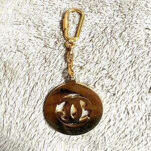 GUCCI Vintage Keyring Gold Tone Black Cream Enamel Logo Bag Charm Made In Italy