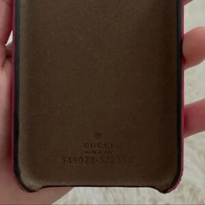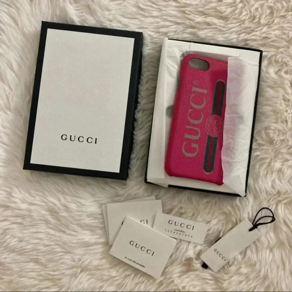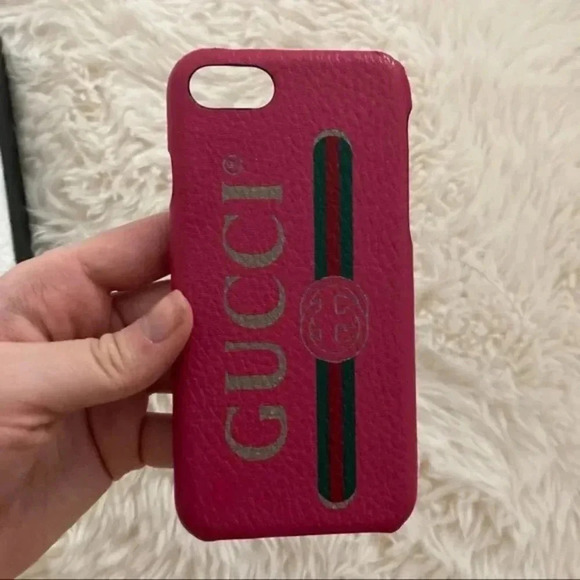 Gucci pebbled leather iPhone case. Will fit a size 7/8/SE. In good used condition, most of the wear is on the corners. Comes with box and authentication cards