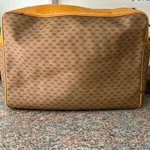 GUCCI Vintage Tote In Safari Pattern. This s vintage piece that was stored and unfortunately forgotten. Being sold AS IS due to Strap rings broken and not able to be attached but in bag. I believe it could be potentially fixed. 15”w x 11”H 5” deep
