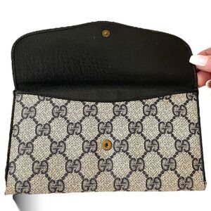 GUCCI Vintage Navy Blue Classic GG Motif Monogram Long Wallet