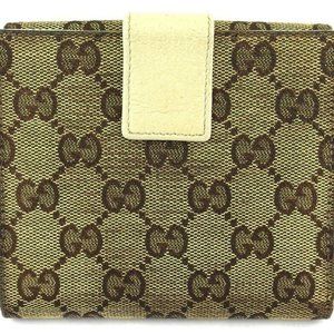 GUCCI W Hook Wallet GG Canvas Beige Canvas ~ Leather Authentic Used
