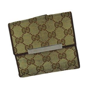 GUCCI W Hook Wallet GG Canvas Beige Canvas ~ Leather Authentic Used