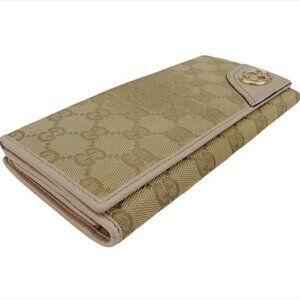 GUCCI W Wallet GG Pattern Beige x Ivory GG Canvas x Leather Authentic USED