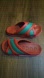 Web Crossover Rubber Sandal in red and green rubber with crossover straps and contrast sole
