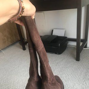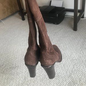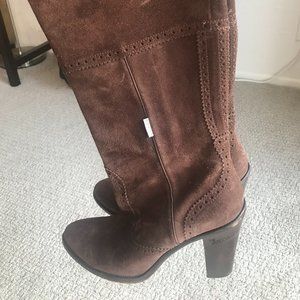 Leather / Suede, Script detail; Leather lining, Leather sole; Measurements: Heel: 3.5-3 7/8; Shaft: 14.5-15; Opening: 14-15.5 inches; Make in Italy
