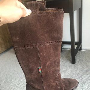 GUCCI WOMEN'S LEATHER / SUEDE SCRIPT LOGO TALL KNEE BOOTS 317032
