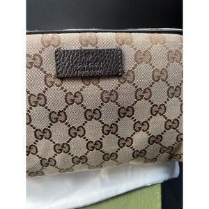 This GUCCI waist belt bag is a must-have for those who love to stay fashionable and hands-free. Made with GG canvas and leather materials, its exterior color is beige with dark brown accents. The bag has a regular size with a bag length of 8.7 inches, bag height of 5.5 inches, and a bag depth of 1.6 inches. The waist bag body bag type has a unisex department, and the handle/strap is made of canvas. The bag is manufactured in Italy and has a reference number of 449174.