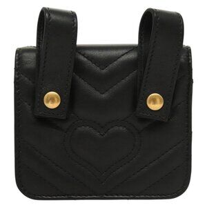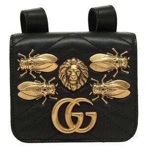 GUCCI Waist Pouch Leather Black Gold 488417 0416 Auth sw1265