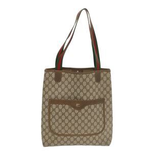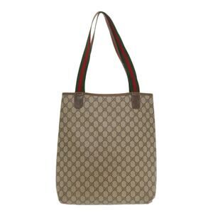 GUCCI Web Sherry Line GG Canvas Tote Bag Pvc Leather Beige Green Red