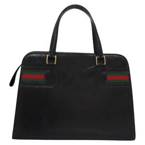 GUCCI Web Sherry Line Hand Bag Leather Black Red Green