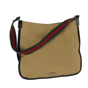 GUCCI Web Sherry Line Shoulder Bag Canvas Beige Green 001 4321 001 4321