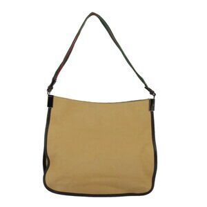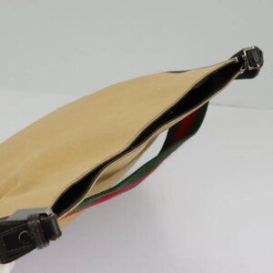 GUCCI Web Sherry Line Shoulder Bag Canvas Beige Silver