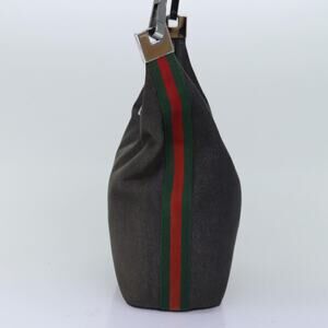 GUCCI Web Sherry Line Shoulder Bag Canvas Gray Red Green