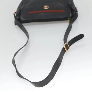 GUCCI Web Sherry Line Shoulder Bag Leather Black