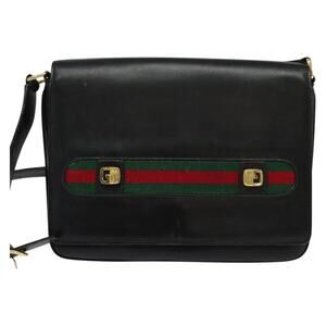 GUCCI Web Sherry Line Shoulder Bag Leather Black Gold