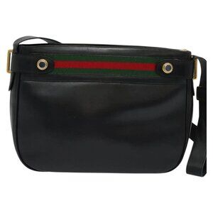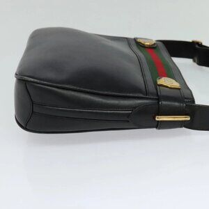 GUCCI Web Sherry Line Shoulder Bag Leather Black Gold Red Auth IN032