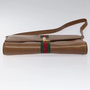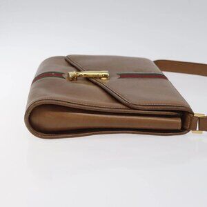 GUCCI Web Sherry Line Shoulder Bag Leather Brown Gold