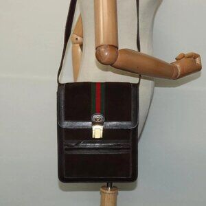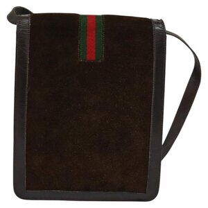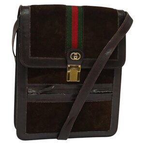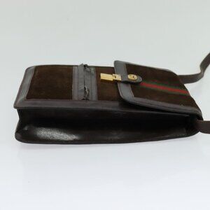 GUCCI Web Sherry Line Shoulder Bag Suede Red Brown Green Auth