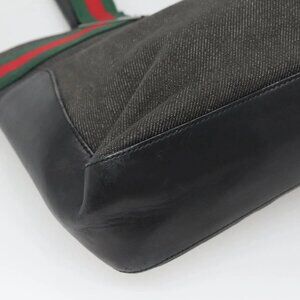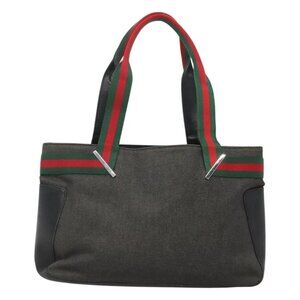 GUCCI Web Sherry Line Tote Bag Canvas Red Gray Green 73983 Auth BA2478