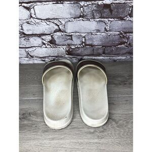 GUCCI Web White Rubber Logo Casual Slides Designer Sandals Men’s Sz 11M US/44EU