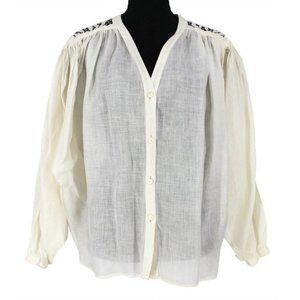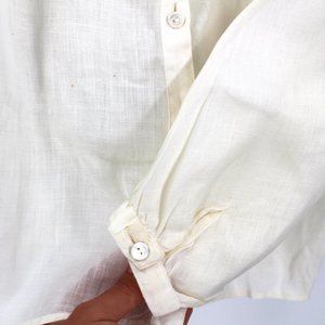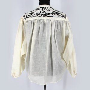 GUCCI VTG White Linen Dolman Sleeve Lace Detail Button Up Blouse Top