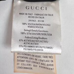 Elevate your wardrobe with the GUCCI Black Silk Dress. Crafted from 100% silk, this dress exudes understated elegance. The intricate gold beaded straps add a touch of luxury to the classic black design. Make a statement at any event with this new addition to your collection.