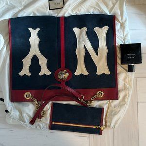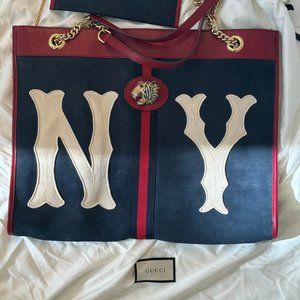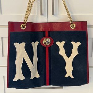 GUCCI Women's Blue Rajah Ny Yankees Large Suede & Leather Tote, worn once, rest of the time in the dust bag. Selling as part of the closet clean up.