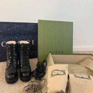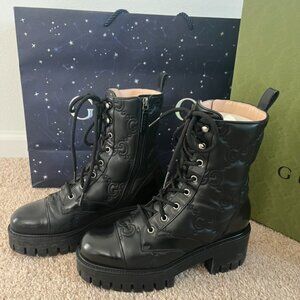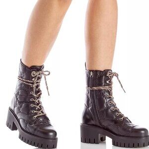 Authentic GUCCI Women's GG Quilted Platform Combat Boots - Size 38