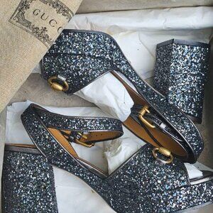 House details add a logo touch to this pair of platform sandals. Inspired by the origins of the brand, the emblematic Horsebit defines the shoe. Presented in an eye-catching metallic dark grey leather, this pair of sandals is completed by an ankle buckle closure.