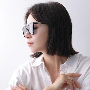 Chic black sunglasses with gold accents. Stylish and versatile. Perfect for any look.
