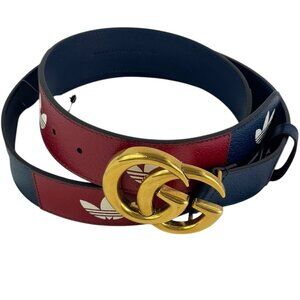 GUCCI X ADIDAS Marmont Navy Blue & Red Leather GG Buckle Men's Belt 100-40
