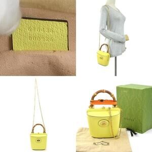 GUCCI Yellow Leather Bamboo Shoulder Bag
