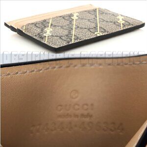 Brand New Authentic Gucci beige Leather gold Horsebit print GG Supreme Canvas card case Wallet🎁