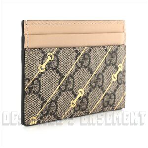 GUCCI beige Leather gold Horsebit print GG Supreme Canvas Card Case wallet NIB🎁