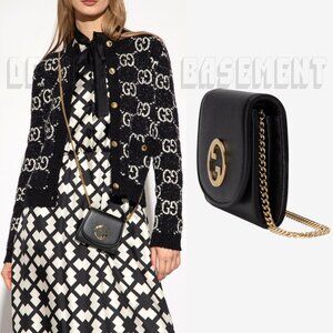 Brand New Authentic 💕 GUCCI black Leather BLONDIE Interlocking G Medium Wallet on chain Micro Bag NIB 🎁