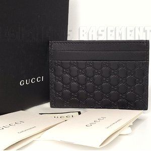Brand New Authentic Gucci black Leather Micro GG GUCCISSIMA embossed card case Wallet