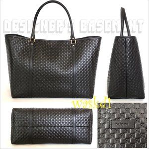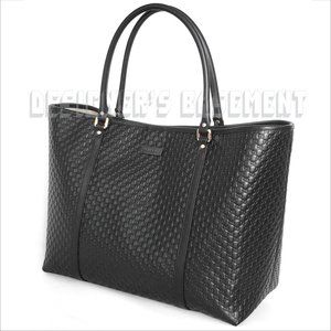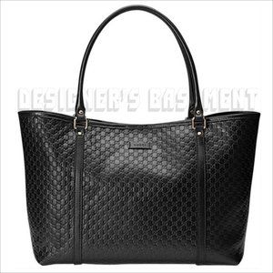 Brand New Authentic Gucci black Micro Guccissima embossed leather magnetic snap top roomy Tote shoulder bag