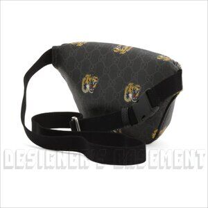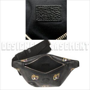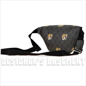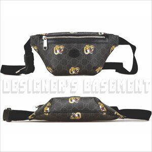 Brand New Authentic Gucci black leather TIGER HEAD GG Supreme black canvas SMALL UNISEX crossbody 80-32 Belt zip BUM bag
