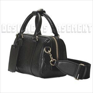 Brand New Authentic black Calfskin TENNIS perforated GG Embossed Mini Duffle BOSTON optional shoulder strap zip top Bag New In Box ๐
