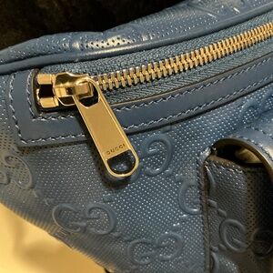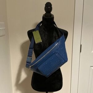 GUCCI blue Calf TENNIS perforated GG Embossed leather 90-36 Belt Bag