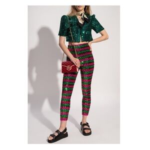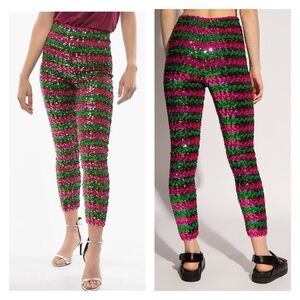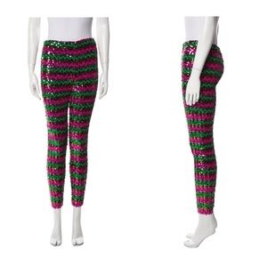 GUCCI green pink sequin stripe high rise holiday cocktail pants size small NWOT