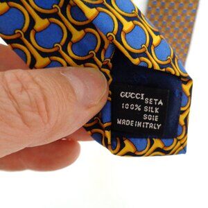 GUCCI men's 100% silk tie horsebit pattern Blue & Gold 59" Made in Italy