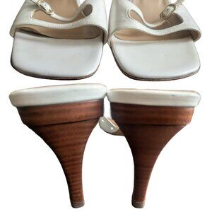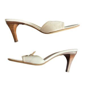 GUCCI off white buckle slides wood stiletto heel open toe vintage 2000's 9B EUC